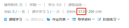 4、學(xué)習(xí)完成后,在主頁(yè)面會(huì)顯示學(xué)習(xí)時(shí)長(zhǎng)。每科學(xué)習(xí)200分鐘,課件學(xué)習(xí)次數(shù)大于5次即可。