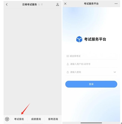 2、點(diǎn)擊考試報名,選擇對應(yīng)考試登錄賬號